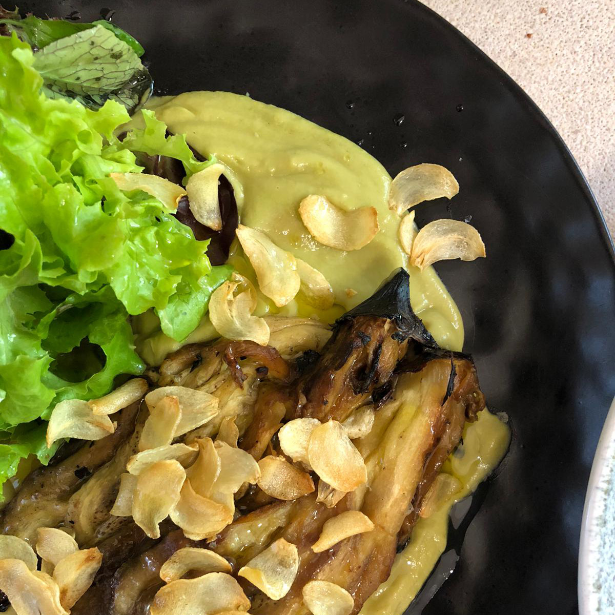 burnt avocado, coconut tiger’s milk, herb and julienned veggie salad