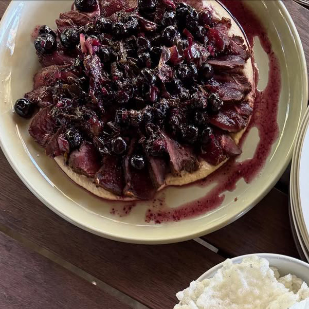 macadamia cream, blueberry salsa